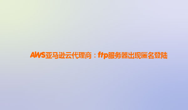 2024-08-04AWS亚马逊云代理商:FTP服务器出现匿名登陆问题的解决方案 作为一家领先的云服务提供商,AWS(AmazonWebServices)凭借其卓越的技术和丰富的产品服务体系,赢得了全球众多企业和开发者的青睐。然而,在...