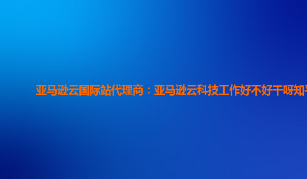 亚马逊云国际站代理商:亚马逊云科技工作好不好干呀知乎