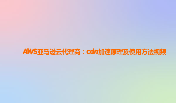AWS亚马逊云代理商:cdn加速原理及使用方法视频