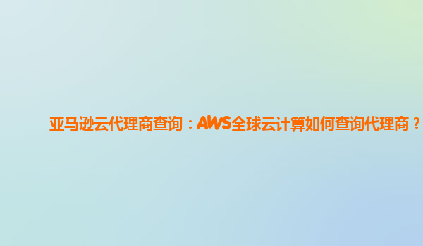 亚马逊云代理商查询:AWS全球云计算如何查询代理商?