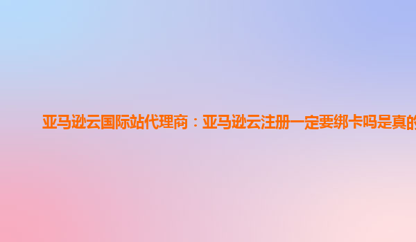 2024-01-17亚马逊云国际站代理商:亚马逊云注册一定要绑卡吗是真的吗 亚马逊云(AmazonWebServices,AWS)是目前全球领先的公共云服务提供商之一。在注册亚马逊云时,绑定信用卡是一个常见的步骤,但并不是必需的。用...