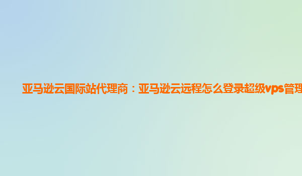 2024-01-12亚马逊云远程登录超级VPS管理器 简介 亚马逊云是世界领先的云计算平台之一,提供强大的云服务和解决方案。AWS亚马逊云的优势在于其可靠性、灵活性和可扩展性。其中,亚马逊云远程服务允许用户通过超级VPS管...