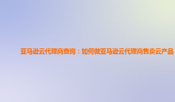 如何做亚马逊云代理商售卖云产品?