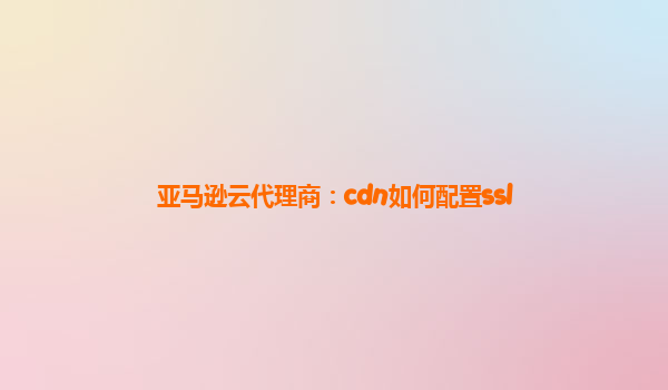 亚马逊云代理商:cdn如何配置SSL