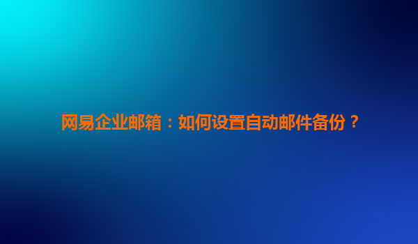 邮件备份对于保障邮件数据的安全性至关重要,特别是对于企业来说,邮件备份不仅能避免因硬件损坏导致的邮件丢失,还能有效防止误删除等操作带来的损失。网易企业邮箱支持自动邮件备份功能,下面是设置自动邮件备份的步骤: