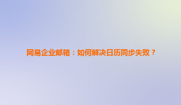 在现代企业中,邮件与日历是日常工作的重要组成部分,尤其是在跨部门协作和远程办公愈加普及的今天,企业邮箱的功能和稳定性直接影响到工作效率。网易企业邮箱作为国内领先的企业级邮件服务商,其日历同步功能也是企业用户日常工作的重要工具之一。然而,尽管网易企业邮箱提供了多种便捷的服务,部分用户仍会遇到日历同步失败的问题。