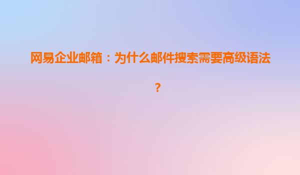 为什么邮件搜索需要高级语法?网易企业邮箱的优势和好处
