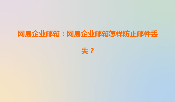 网易企业邮箱:网易企业邮箱怎样防止邮件丢失?
