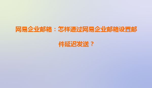 网易企业邮箱:怎样通过网易企业邮箱设置邮件延迟发送?