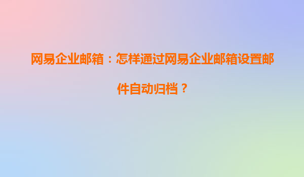在当今快速发展的信息时代,电子邮件已成为日常商务沟通的重要工具。为了提高工作效率和管理效果,很多企业选择使用功能强大的企业邮箱。网易企业邮箱作为市场上的佼佼者,提供了包括邮件自动归档在内的多种高级功能,帮助企业用户更好地管理邮件,提升工作效率。本文将详细介绍如何通过网易企业邮箱设置邮件自动归档,并结合网易企业邮箱及其代理商的优势进行分析。