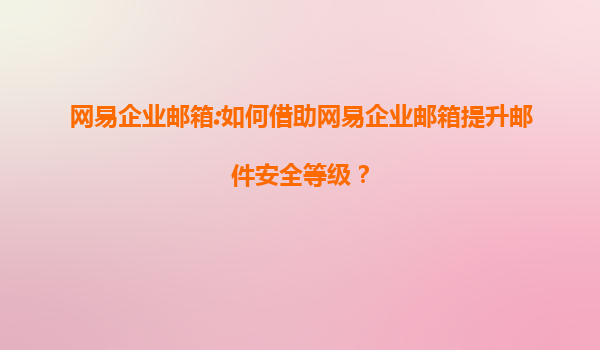 网易企业邮箱:如何借助网易企业邮箱提升邮件安全等级?