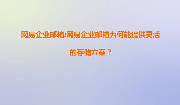 网易企业邮箱:网易企业邮箱为何能提供灵活的存储方案?