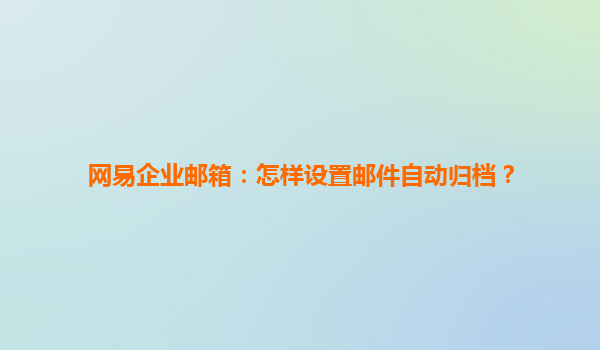 高效管理企业信息流,网易企业邮箱自动归档功能详解