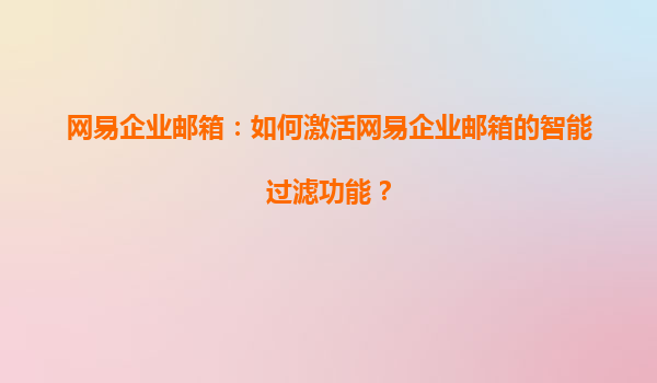 标题"如何激活网易企业邮箱的智能过滤功能?"包含三层关键信息: