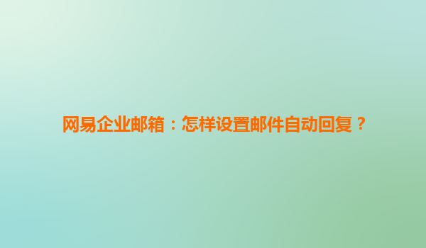 网易企业邮箱的自动回复功能非常实用,以下是详细的设置步骤: