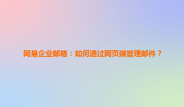 网易企业邮箱凭借其安全性、高效性和易用性,成为企业邮件管理的理想选择。通过网页端,用户可以轻松完成邮件的收发、分类和管理,大大提升了工作效率。无论是普通员工还是企业管理员,都能从中受益。