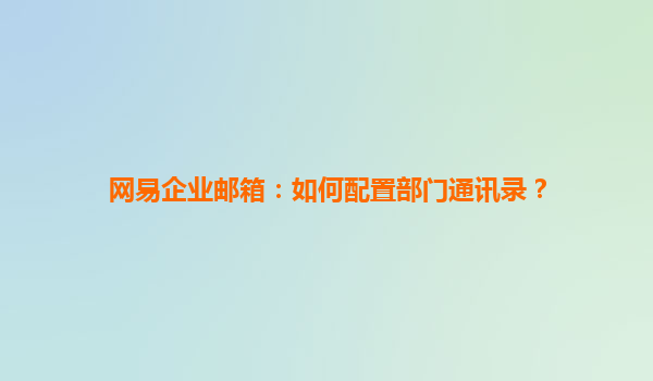 网易企业邮箱:如何配置部门通讯录?