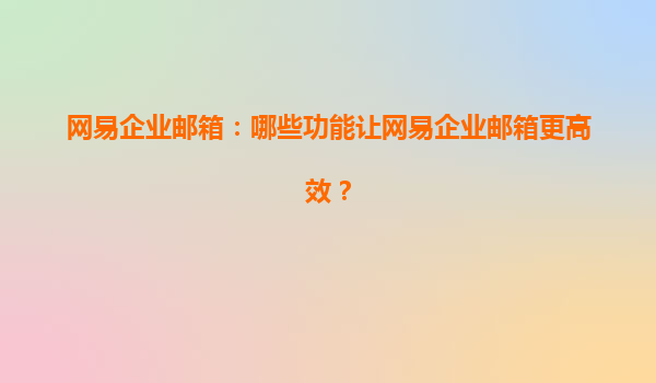 网易企业邮箱:哪些功能让网易企业邮箱更高效?