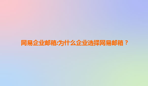 网易企业邮箱:为什么企业选择网易邮箱?