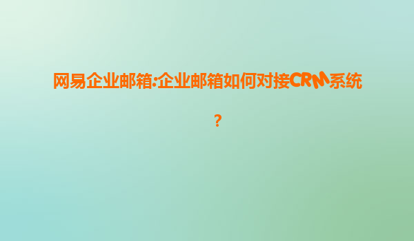 网易企业邮箱:企业邮箱如何对接CRM系统?