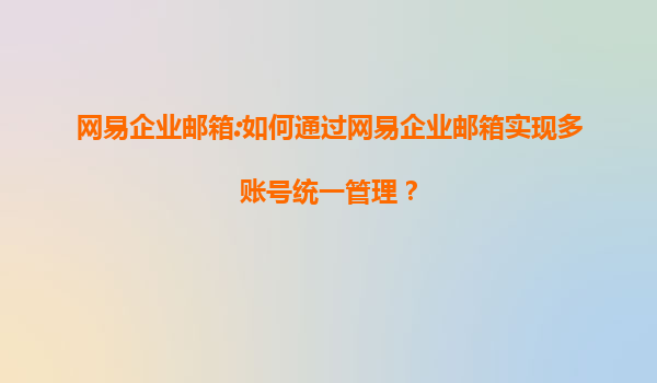 网易企业邮箱:如何通过网易企业邮箱实现多账号统一管理?