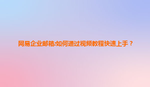 网易企业邮箱:视频教程助您快速上手的高效办公利器