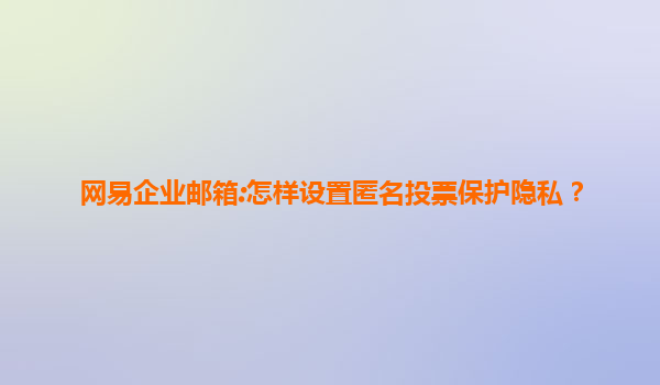 网易企业邮箱:如何设置匿名投票保护隐私?