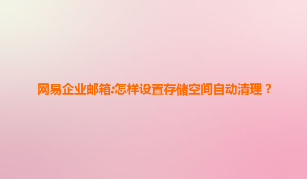 网易企业邮箱:如何设置存储空间自动清理?