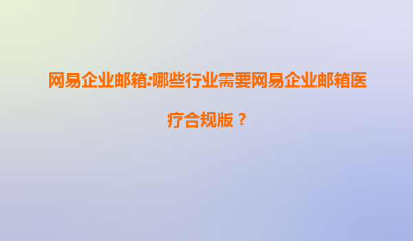 网易企业邮箱医疗合规版是专为医疗健康及相关领域打造的邮箱解决方案,主要满足以下核心需求: