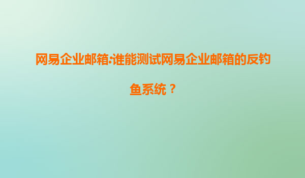 网易企业邮箱:谁能测试网易企业邮箱的反钓鱼系统?