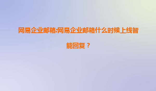 网易企业邮箱何时上线智能回复功能?——解析高效办公新趋势