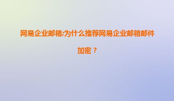 网易企业邮箱:为什么推荐网易企业邮箱邮件加密?