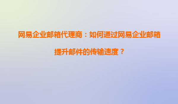 网易企业邮箱代理商:如何通过网易企业邮箱提升邮件的传输速度?
