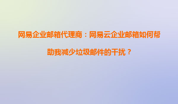 网易企业邮箱代理商:网易云企业邮箱如何帮助我减少垃圾邮件的干扰?