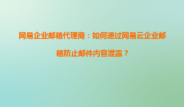 网易企业邮箱代理商:如何通过网易云企业邮箱防止邮件内容泄露?