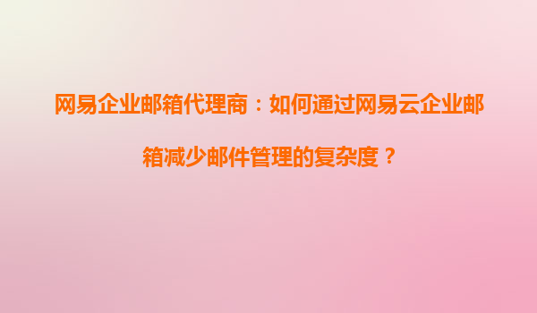 网易企业邮箱代理商:如何通过网易云企业邮箱减少邮件管理的复杂度?