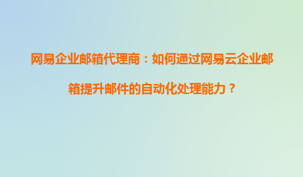 网易企业邮箱代理商:如何通过网易云企业邮箱提升邮件的自动化处理能力?