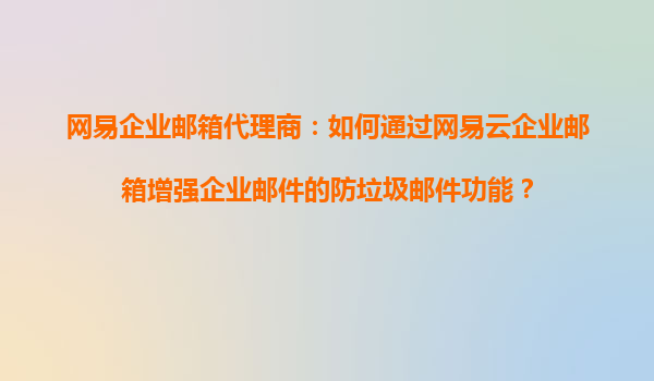 网易企业邮箱代理商:如何通过网易云企业邮箱增强企业邮件的防垃圾邮件功能?