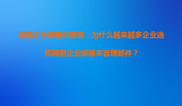 网易企业邮箱代理商:为什么越来越多企业选择网易企业邮箱来管理邮件?