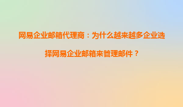 网易企业邮箱代理商:为什么越来越多企业选择网易企业邮箱来管理邮件?