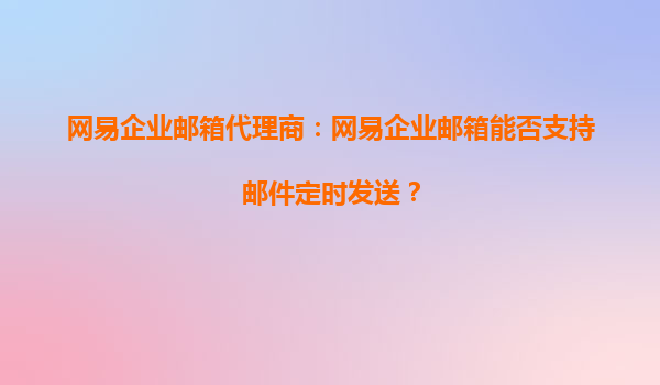 网易企业邮箱代理商:网易企业邮箱能否支持邮件定时发送?