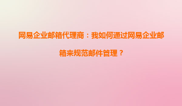 网易企业邮箱代理商:如何通过网易企业邮箱规范邮件管理?