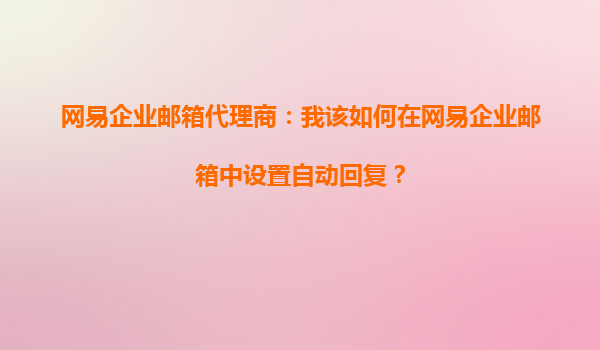 网易企业邮箱代理指南:轻松设置自动回复功能