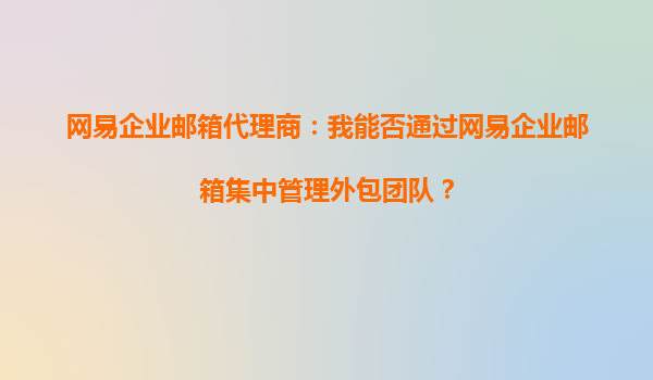 网易企业邮箱:高效集中管理外包团队的理想选择