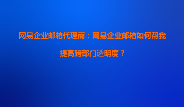 网易企业邮箱代理商:网易企业邮箱如何帮我提高跨部门透明度?