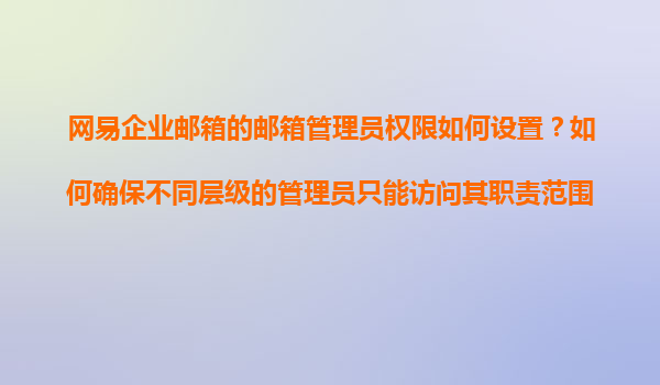 网易企业邮箱的邮箱管理员权限设置与管理数据安全分层方案