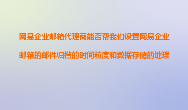 网易企业邮箱代理商能否帮我们设置网易企业邮箱的邮件归档的时间粒度和数据存储的地理位置选择?