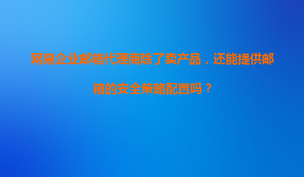 网易企业邮箱代理商:不止售产品,更提供专业安全策略配置