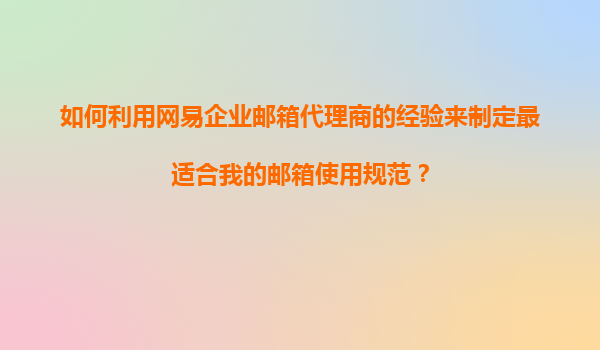 如何借鉴网易企业邮箱代理商经验定制个性化邮箱使用规范