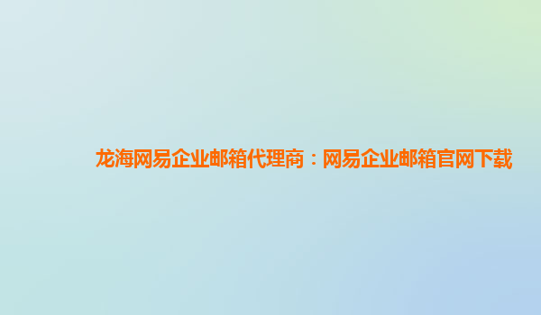 龙海网易企业邮箱代理商:网易企业邮箱官网下载